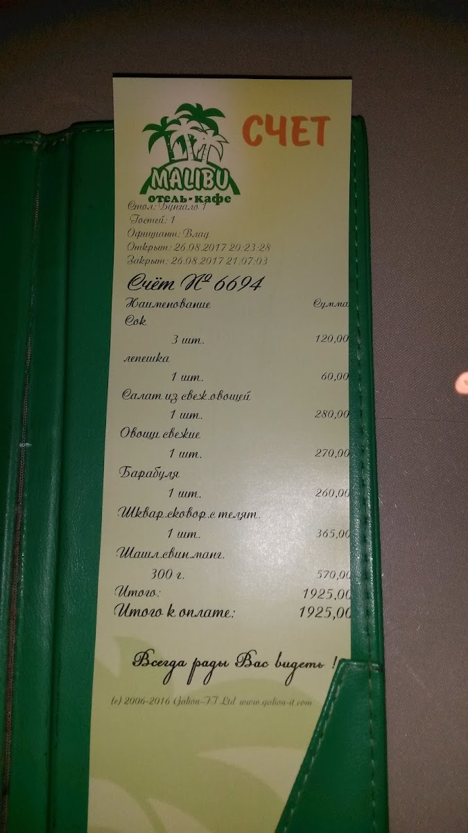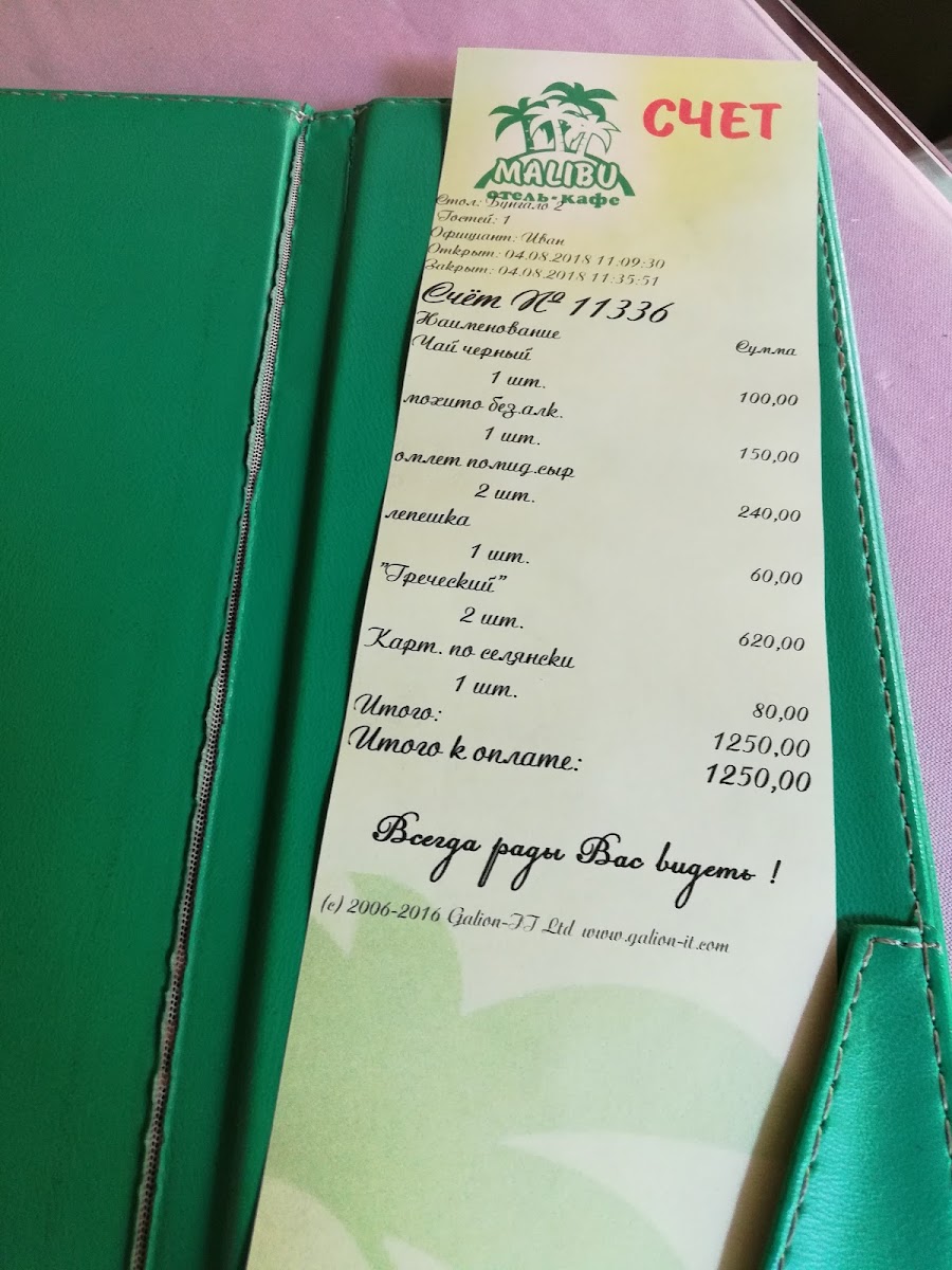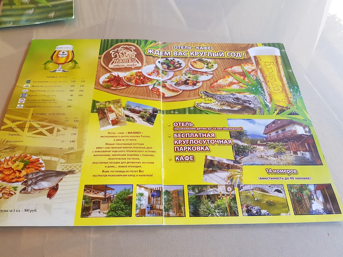 Otel' - Kafe 'Malibu' isn’t just a place to eat; it’s a sanctuary of relaxation and culinary adventure. With a unique touch, including a live crocodile exhibit, this location guarantees that every visit leaves you hungry for more.
